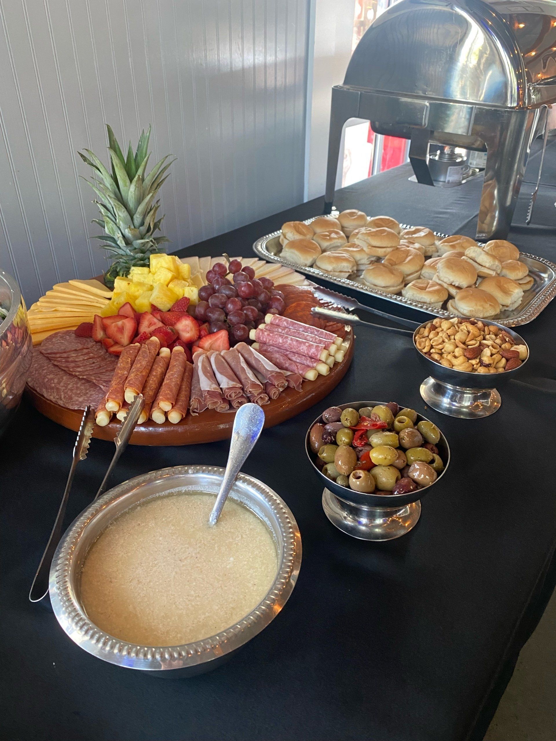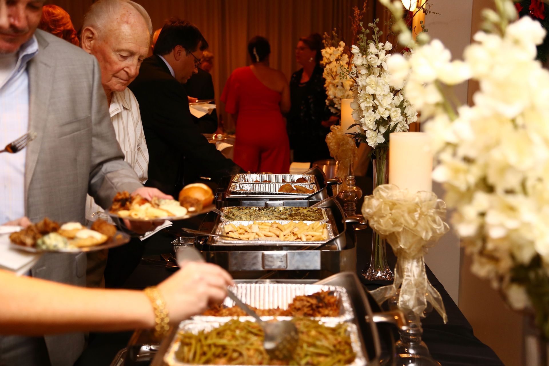 Buffet tables provide more options and require less staff than a plated-dinner service. This is a more casual, serve yourself type of meal.